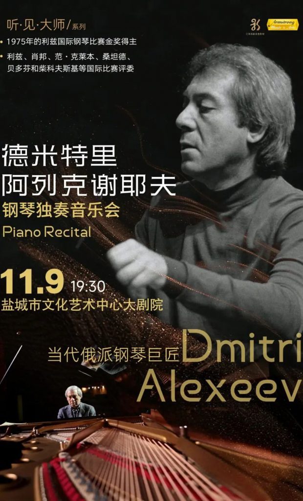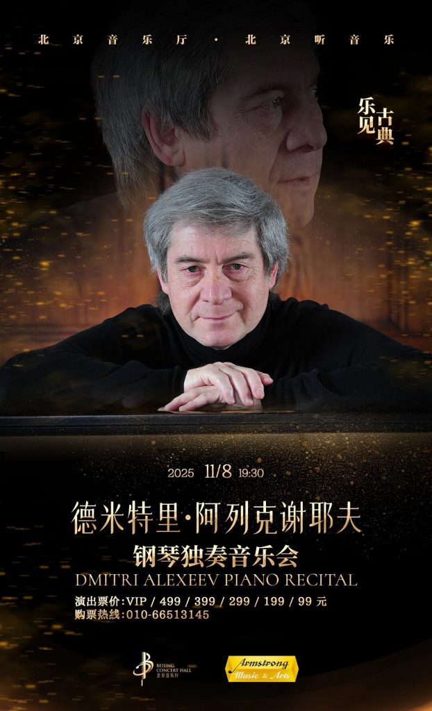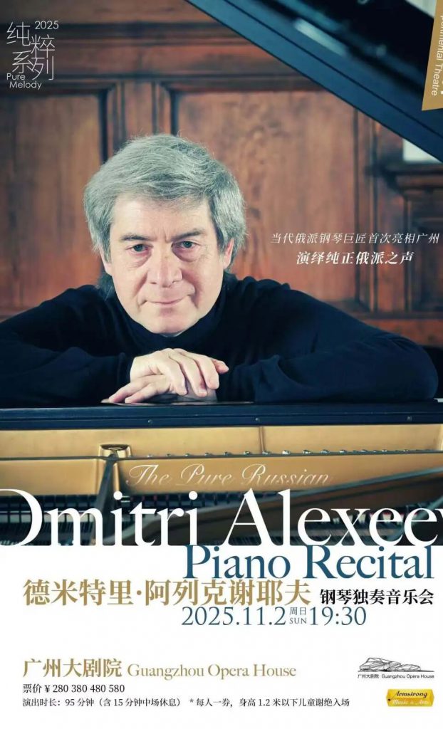 2025 年 10 月至 11 月,俄派钢琴传奇德米特里・阿列克谢耶夫开启中国 6 城巡演,相继于上海、广州、北京、盐城、杭州、厦门登台献艺。此次巡演中,大师不仅以近八旬高龄开设干货满满的大师课,更携拉赫玛尼诺夫、肖邦、李斯特等浪漫主义经典之作亮相,以教科书级的精湛演绎诠释俄派钢琴的深邃典雅与刚柔并济,所到之处座无虚席、好评如潮,为深秋的中国观众带来直击心灵的古典音乐体验,余下场次的珍贵聆听机会正当其时。 演出日期:当地时间2025.10.29-11.15(中国6城巡演)演出场地:10月29日-30日 上海音乐学院(大师课)11月01日 上海音乐厅11月02日 广州大剧院11月08日 北京音乐厅11月09日 盐城文化艺术中心大剧院11月11日-12日 浙江音乐学院(大师课)11月15日 鼓浪屿音乐厅演出时长:约1个半小时(包含1个中场休息)演出语言:钢琴独奏 他是首位征服利兹钢琴大赛的俄罗斯艺术家,是《泰晤士报》认证的“伟大的钢琴诗人”,更是让乐评人大卫·尼斯称赞“为数不多的能够演奏出贯穿全身的共鸣的钢琴家。” 担任世界上最负盛名的国际钢琴比赛的评委:包括利兹、肖邦、范克莱本、桑坦德、贝多芬和柴可夫斯基国际钢琴比赛。这次阿列克谢耶夫带来的曲目,完美融合“俄罗斯史诗感”与“波兰浪漫魂”上半场用拉赫玛尼诺夫的厚重叩击心灵,下半场用肖邦的细腻治愈初冬。